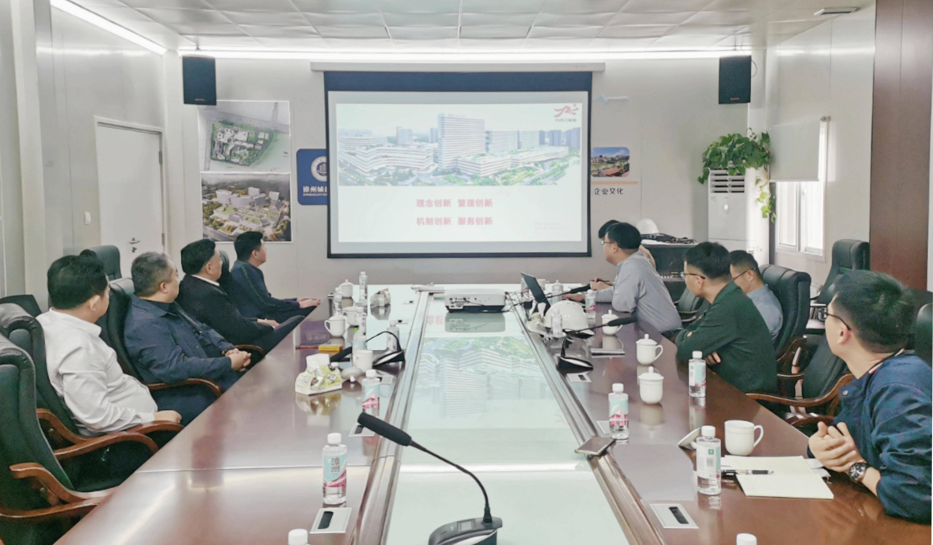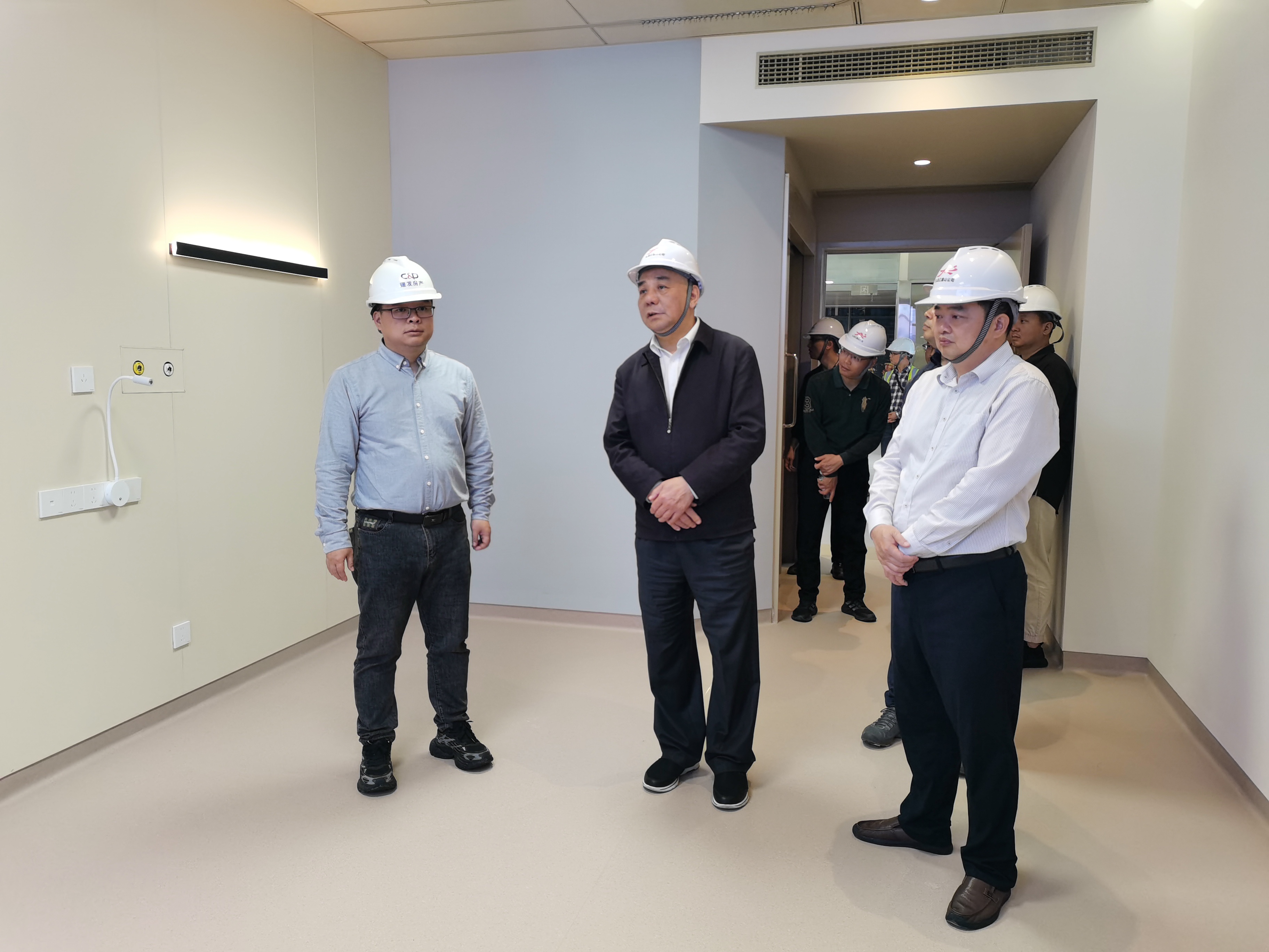 石金塔帶領(lǐng)蔡國(guó)斌一行參觀(guān)了漳州九龍江醫(yī)院的診室、病房、醫(yī)生辦公室等樣板房,詳細(xì)介紹了九龍江醫(yī)院的布局規(guī)劃、配套項(xiàng)目建設(shè)等情況。